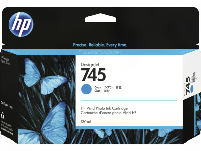 Cartusul de cerneala HP 745 (F9J97A) cyan (albastru) este ideal pentru a produce grafica de impact, semne si postere cu rosu cromatic HP. Cerneala este rezistenta la apa, zgarieturi si decolorare, iar printurile pot dura pana la 200 de ani cu HP Vivid Photo Inks. Cartusul are o capacitate de 130 ml si este compatibil cu imprimantele HP DesignJet Z2600 si Z5600.